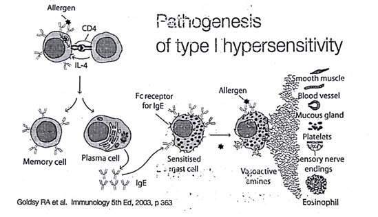 - IgE binds to FC(fragment crystallization) of mast cells and sensitize it.