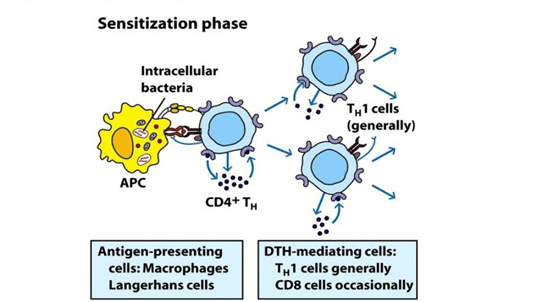 - Th1 mediated response is elucidated upon reexposure to antigen.
