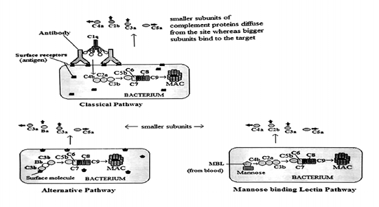 - Initiation of late components of complement system to form Membrane attack complex (MAC) and to kill pathogen is done by C5 convertase generated by various complement pathways.