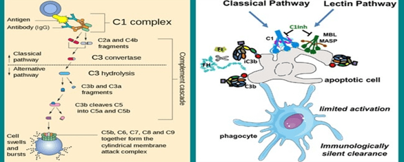 - Complement pathway has a role to play in removal of damaged cells and pathogens by helping antibodies and phagocytic cells in this process.
