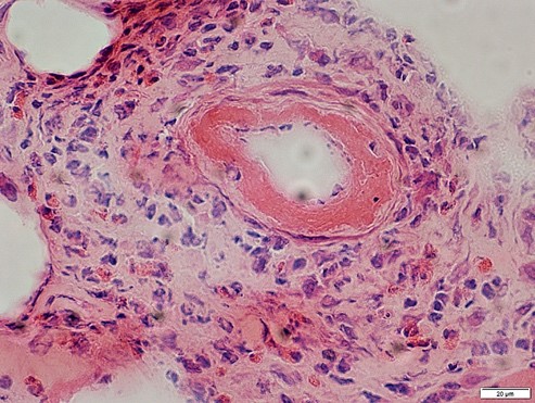 Vascular damage (autoimmunity, immune complex deposition, infections (viruses, spirochetes, rickettsiae)) is a pattern associated with this.