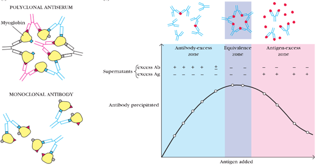 - If there is an excess of antigens or antibodies, such extensive lattices are not formed and precipitation is not seen.