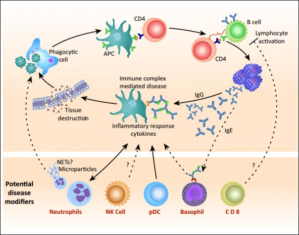 - Immunoglobulin E (IgE): It’s present in extremely low in serum. It mediate the immediate hypersensitivity reactions or allergic reactions. On the exposure of allergen, IgE will be produced which binds to Fc receptors present on the membranes of blood basophils and tissue mast cells. It also plays a major role in parasitic infections