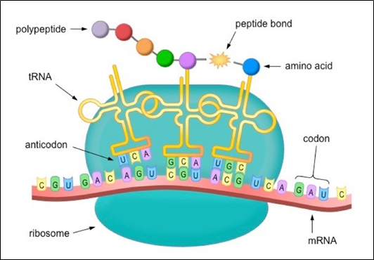 The translation is the process in which proteins are generated using the information carried in mRNA molecules. The nucleotide sequence in the mRNA molecule provides the code for an essential amino acid sequence to create a protein. A protein is made from many amino acids, similar to how RNA is constructed from many nucleotides. A ‘polypeptide chain’ is considered a chain of amino acids, and a polypeptide chain bends and folds on itself to form a protein.